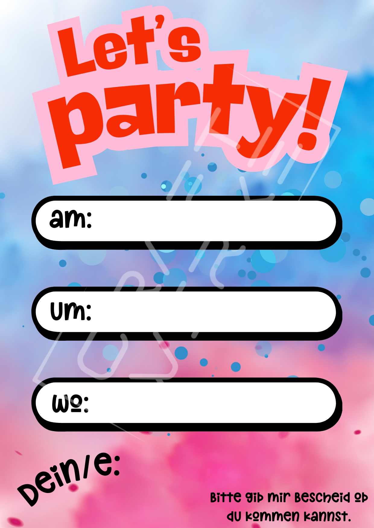 Platz zum Beschriften – alle wichtigen Infos zur Party auf der Rückseite